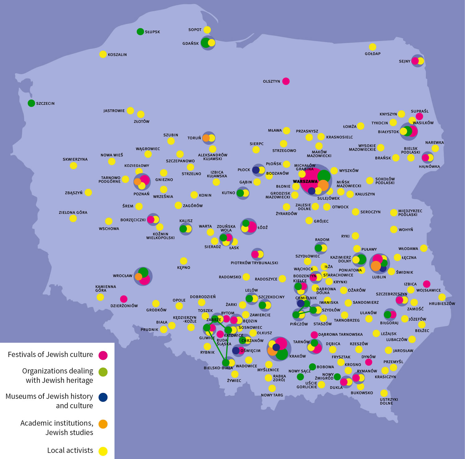 Describing the multitude of initiatives that have sprouted over the past twenty-five years is a tall order. They have been both grassroots and top-down in character, local and nationwide, happening in small towns and large cities: festivals, universities, museums, individual people. This map shows how many there are and how diverse they are.